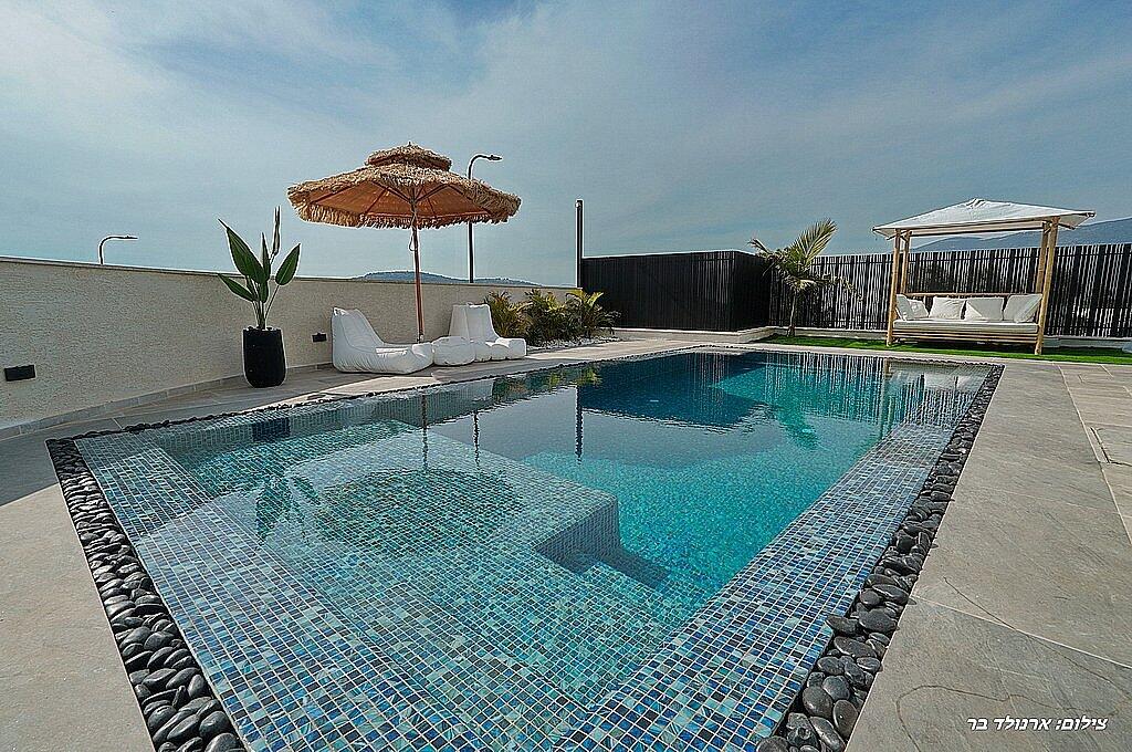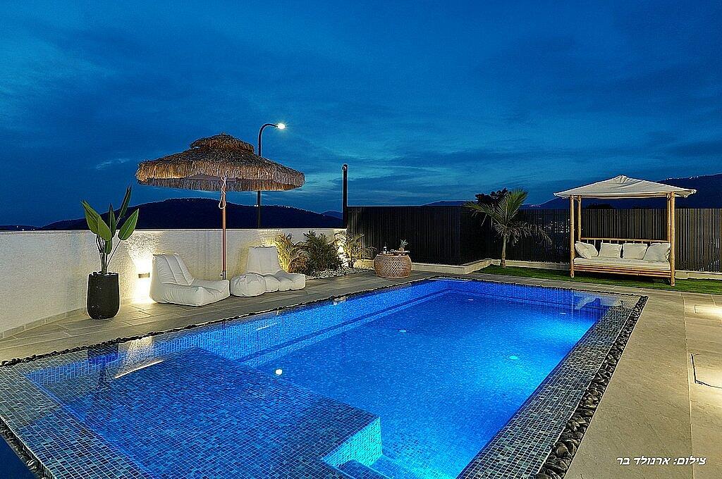 מחפשים חופשה מפנקת בגליל? וילת הלליה מציעה את כל מה שצריך! 5 חדרי שינה יוקרתיים, בריכה חיצונית מחוממת ומגודרת, מטבח מאובזר, שולחנות משחק ופינות ישיבה במרפסת – הכל במקום אחד כדי להבטיח חופשה בלתי נשכחת.