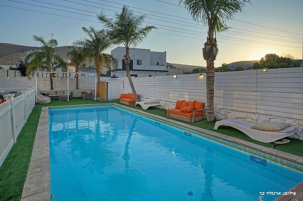 וילה דקל כחול - פינת חמד קסומה בגליל התחתון. גלו וילה מקסימה ביבנאל המושלמת לאירוח משפחות, קבוצות וזוגות. המתחם כולל 6 חדרי שינה מרווחים, סלון מפנק ומטבח מאובזר במלואו. צאו אל החצר המרהיבה המציעה בריכת שחייה מפנקת, פינת מנגל ומגוון משחקי שולחן לבילוי משפחתי מושלם.