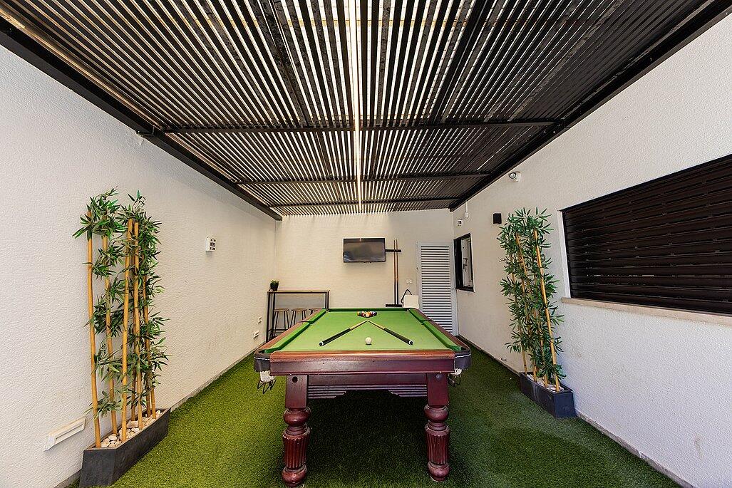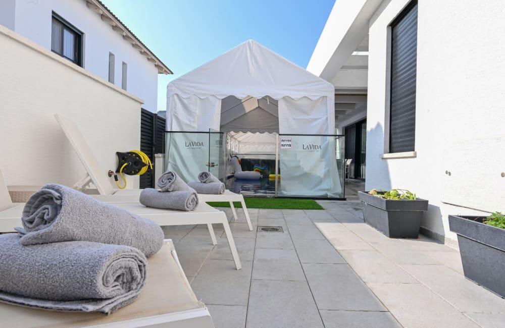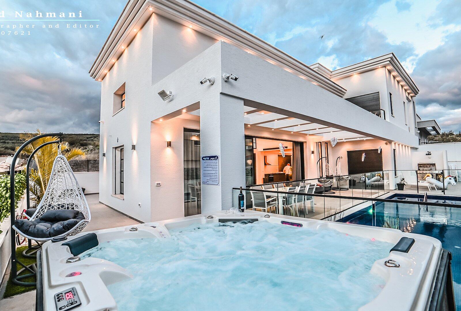 בחצר המטופחת תמצאו בריכת שחייה צלולה מחוממת ומקורה, ג'קוזי ספא ופינות ישיבה מפנקות. לבילוי המשפחתי מוצעים משחקי שולחן ומערכת שמע מובנית איכותית לשימוש האורחים.